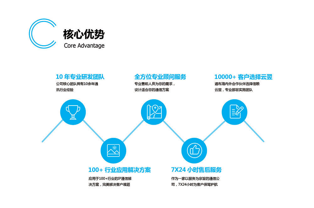 云翌通信一直秉承著"用最簡(jiǎn)單的方法,最踏實(shí)的態(tài)度,為用戶創(chuàng)造最大的價(jià)值"為發(fā)展理念,致力于成為國內(nèi)IP通信行業(yè)第一品牌,為客戶提供放心的通信產(chǎn)品及服務(wù)。
